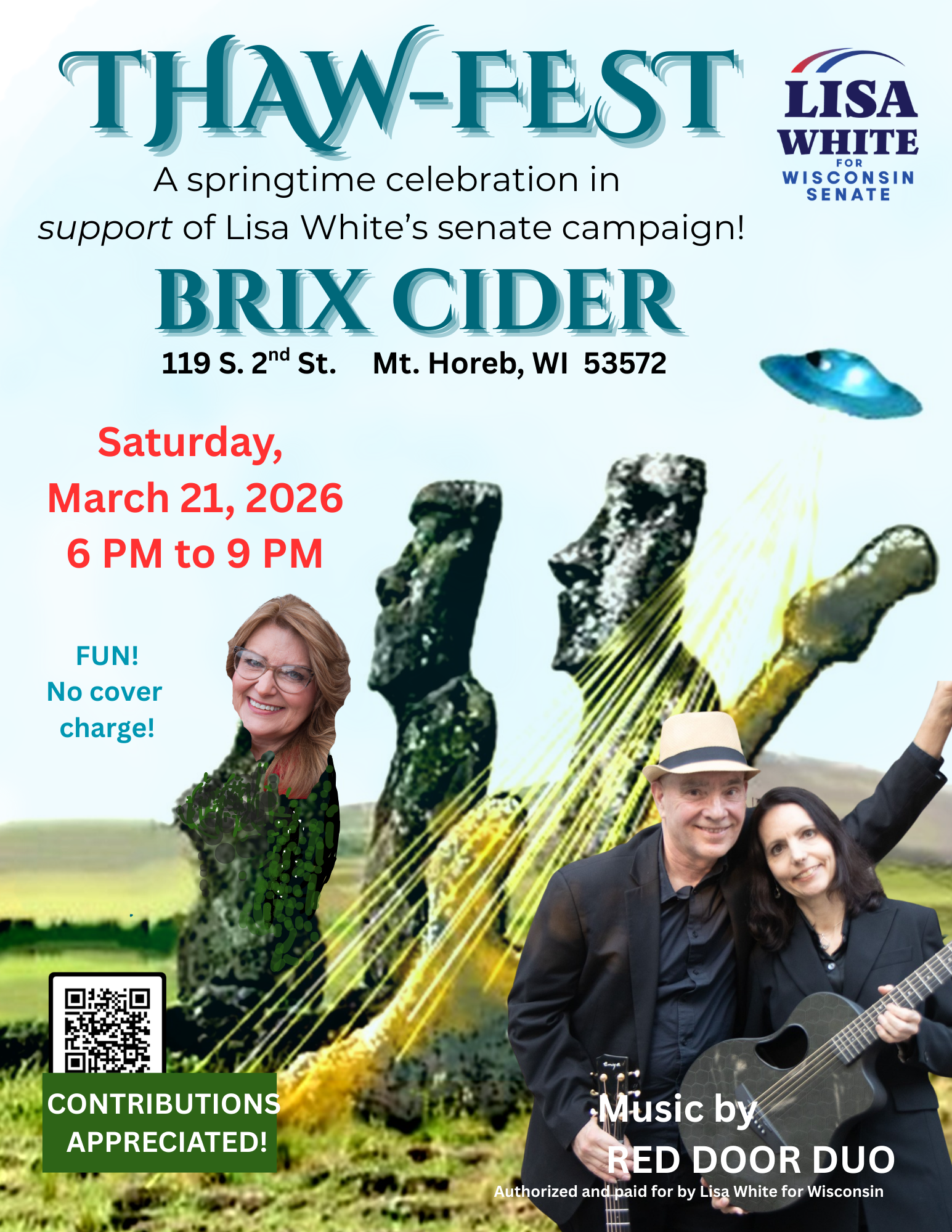 SPRING the MEANS rebirth and the celebration of the THAW! Longer daylight and more warmth lend to the joy of great music, fabulous food, gifts, silent auction, and phenomenal beverages— all served up at BRIX CIDER in Mt. Horeb, Wisconsin. The festivities warm up at 6:00 p.m. and the evening gets even warmer and more festive!