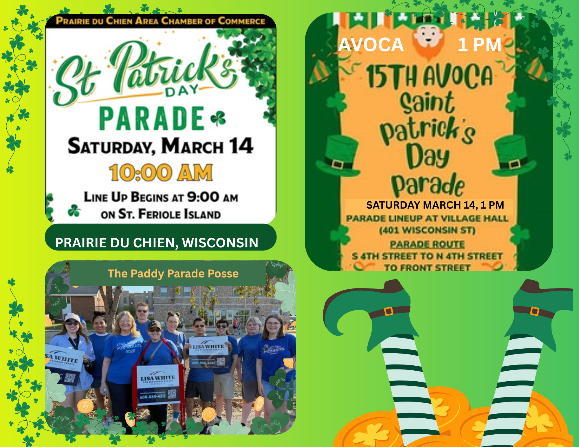 It’s TIME to put the marching shoes back on and toss goodies to the crowd as we celebrate this age old holiday tradition. The trees are turning green and so is the luck-o-the-Irish. Everybody gets to celebrate no matter what your ancestry is!